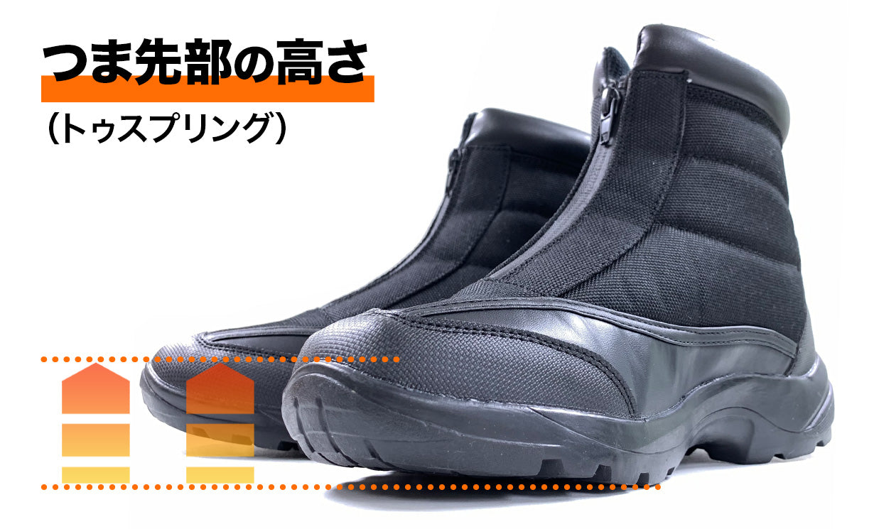 つま先部の高さが低いと、ちょっとした段差につまずき易くなります。年齢が高くなると擦り足で歩く傾向があるため、よりつまずき易くなります。
